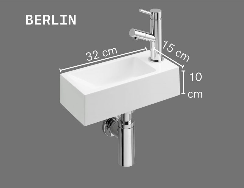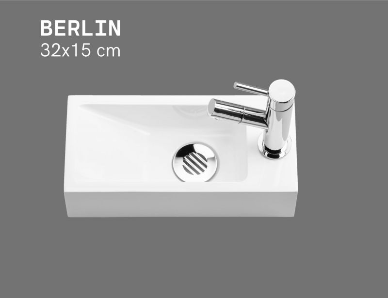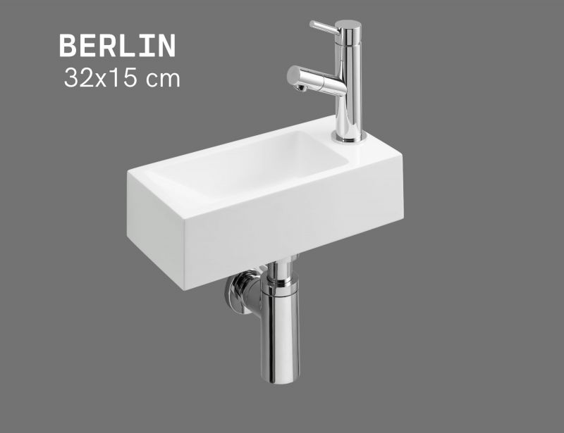 Ultrakompaktes handwaschbecken 32x15 cm aus weißem mineralguss berlin droite