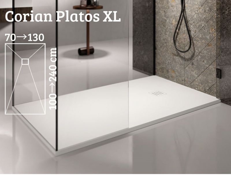 Duschwannen aus DuPont Nemours ® Corian-Mineralharz, glattes, mattes Glacier White-Finish, nach Maß gefertigt. 10 JAHRE GARANTIE.