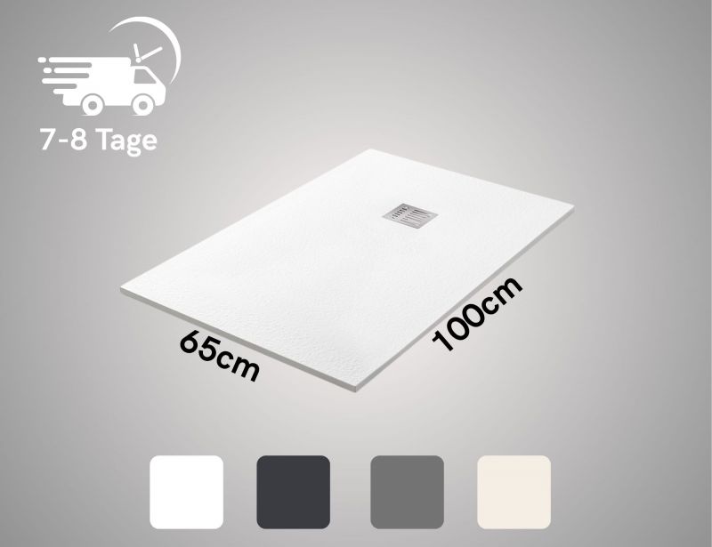 TECNIK Duschwanne 65x100cm aus Harz und Mineralien, erhältlich in Sonderanfertigung. Rutschfest, wasserabweisend und pflegeleicht mit Steinoptik-Oberfläche und extra-flach (2,5 cm). Kostenloser Versand.