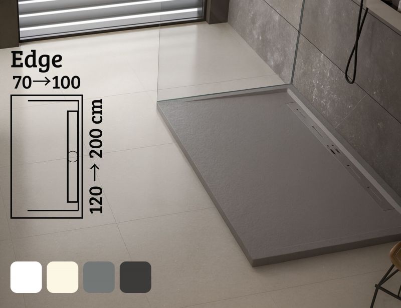 Duschwanne Rinne EDGE. Seine Textur ähnelt der von Naturstein. Sein Seitengitter ist leicht und elegant, aus hochwertigem Edelstahl gefertigt.