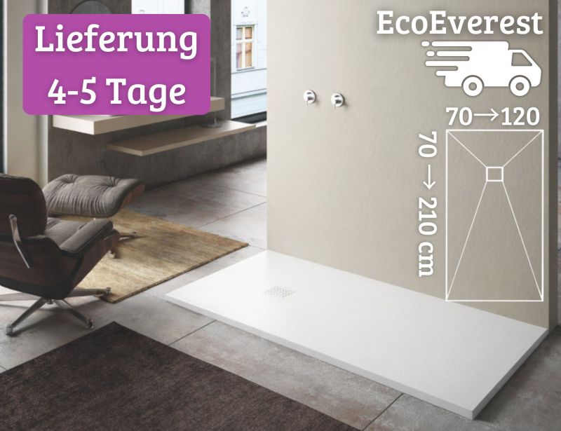 Die EcoEverest Duschwannen werden aus ökologischer und langlebiger Acrystone®-Resin gefertigt. Sie sind maßgefertigt oder zuschneidbar erhältlich.