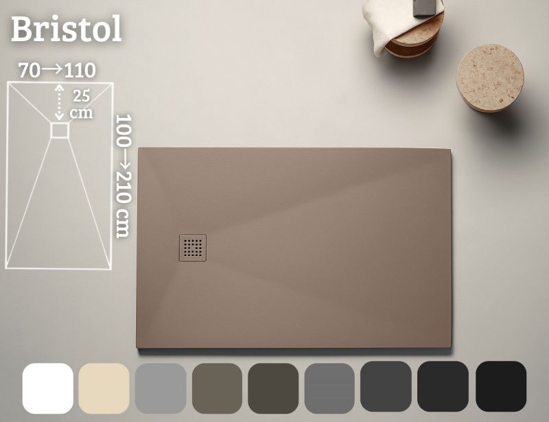 Akrytan® Duschwanne, extra flach, aus Mineralharz, groß, maßgefertigt, Pizarra-Finish (Schiefer)