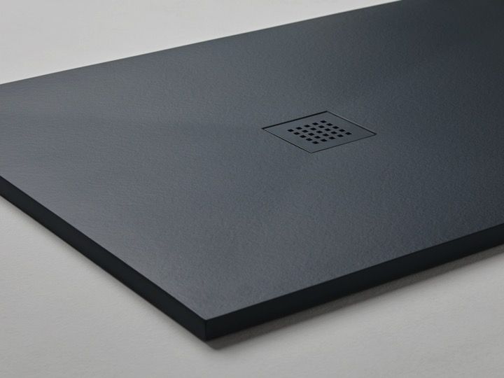 Akrytan® Duschwanne, extra flach, aus Mineralharz, groß, maßgefertigt, Pizarra-Finish (Schiefer)