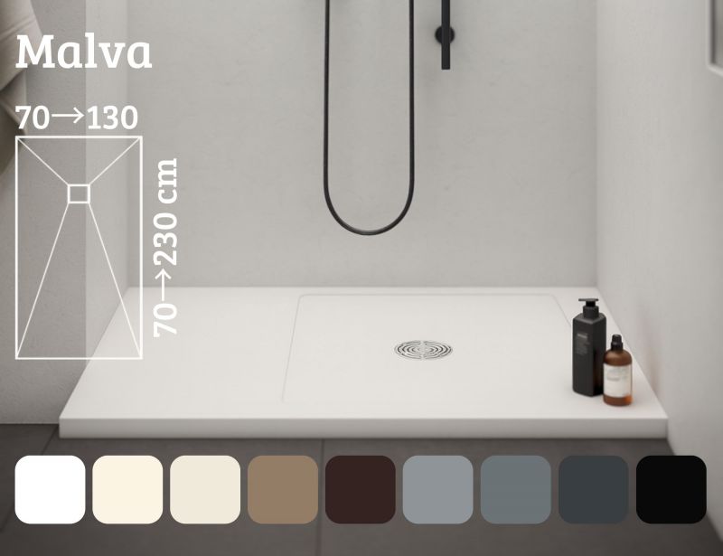 Die MALVA-Serie ist so konzipiert, dass sie zu Ihrem Stil passt, sodass Sie Ihren Duschbereich vollständig anpassen und einen einzigartigen Look kreieren können. Mit ihrer klaren Form eignet sich diese Duschwanne ideal zur Anpassung an Säulen- oder falsche quadratische Strukturen.