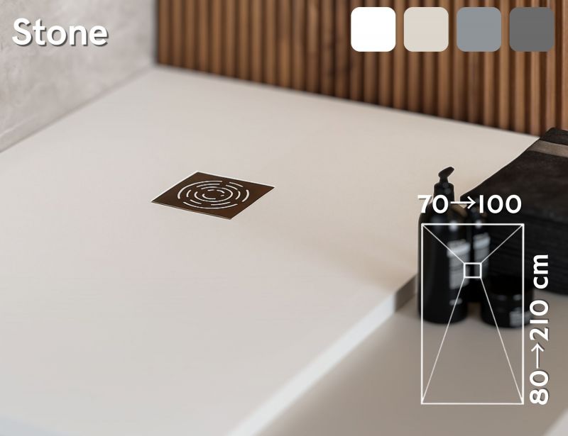 Zuschneidbare Duschwannen aus leichtem Mineralharz, ca. 40% des Gewichts ermöglicht einen bequemeren und schnelleren Einbau, verringert den Kraftaufwand und erleichtert die Handhabung.