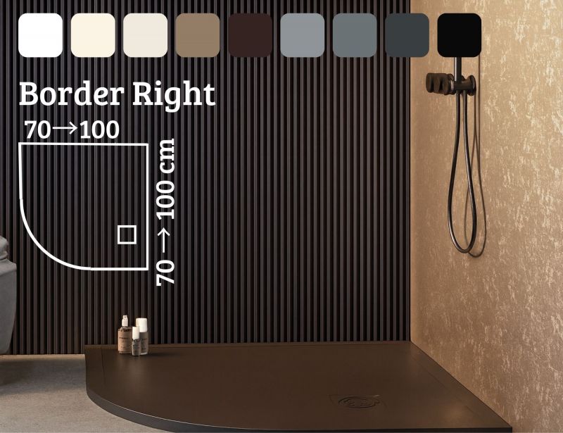 Duschwanne, mit viertelrunder ecke - radius 55 rand rechts