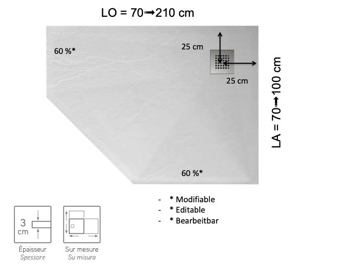 Die Duschwanne PENTAGONE wird nicht zugeschnitten, sondern maßgefertigt mit ebener Front zum Einbau einer Duschwand.