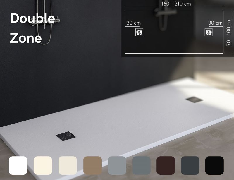 Ein einzigartiges Design, das es uns ermöglicht, zwei Duschräume in einer einzigen Duschwanne zu kombinieren. Unsere DOUBLE ZONE Duschwanne hat ihren eigenen Charakter und verbindet Minimalismus mit Avantgarde.
