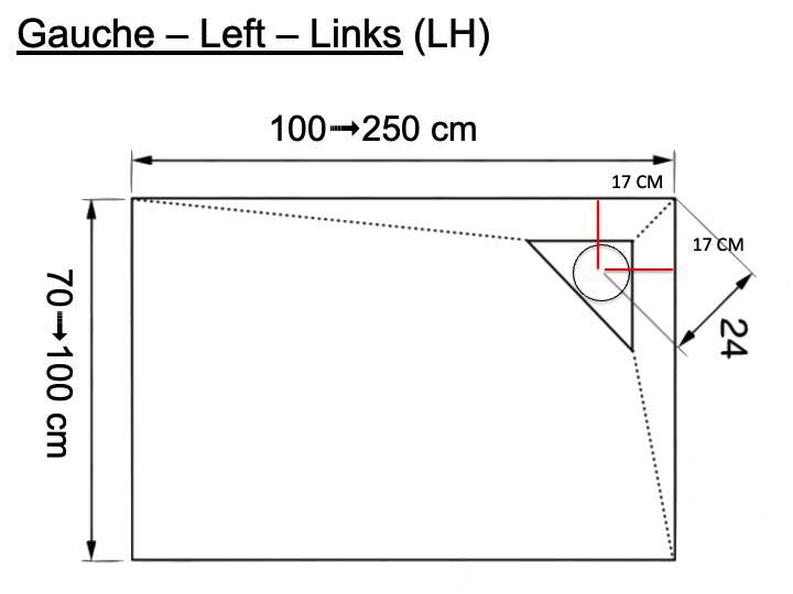 Design-Duschwanne, mit Eckwasserablauf, Siphon in der rechten Ecke bei 17 x 17 cm, Schieferoptik, rutschfest.