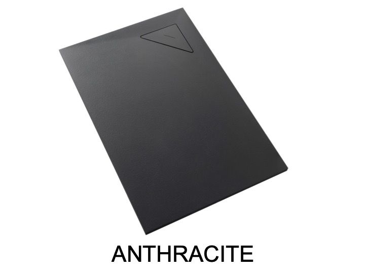 Design-Duschwanne, mit Eckwasserablauf, Siphon in der rechten Ecke bei 17 x 17 cm, Schieferoptik, rutschfest.