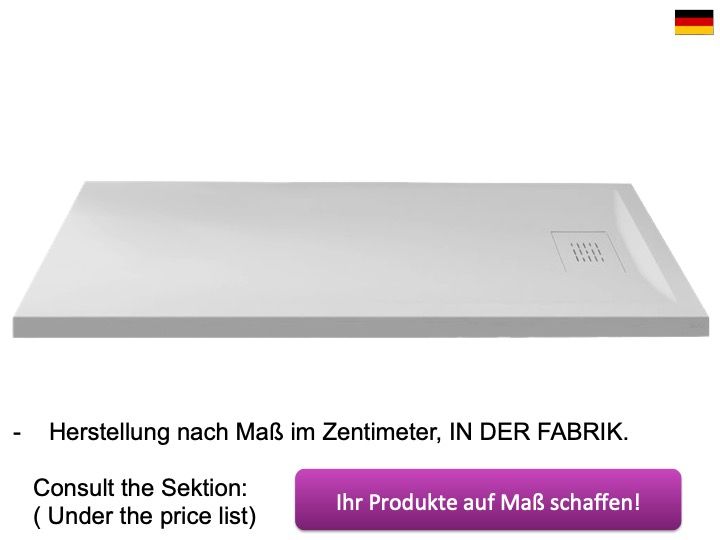 Die zuschneidbaren Duschwannen aus leichtem Mineralharz, ca. 40% des Gewichts ermöglicht eine bequemere und schnellere Installation, verringert den Kraftaufwand und erleichtert die Handhabung.
