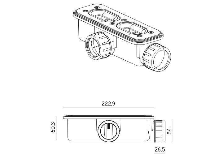 Die Duschwanne ist schuldig, bis zu 20 cm. Ein flacher Bereich am Ende der Duschwanne ermöglicht diese Reduzierung, ohne die Abflussneigungen zu beschädigen.