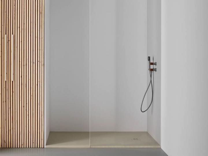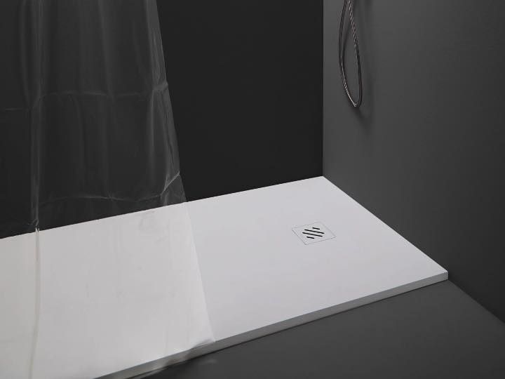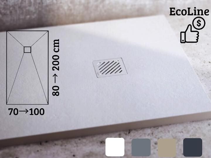Der zuschneidbare ECOLINE Duschboden ist widerstandsfähig und leicht, hergestellt aus durchgefärbtem Mineralharz.