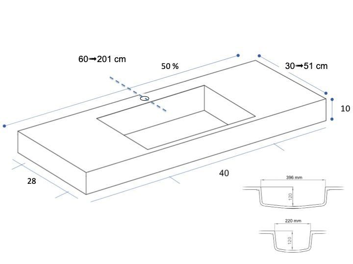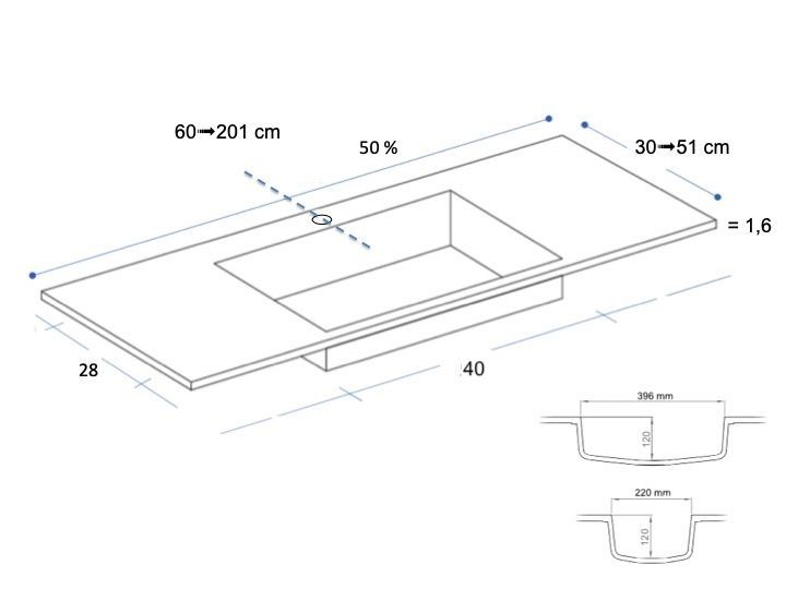 Waschtischplatte, solid-surface-harz, leeds solid 40 mini